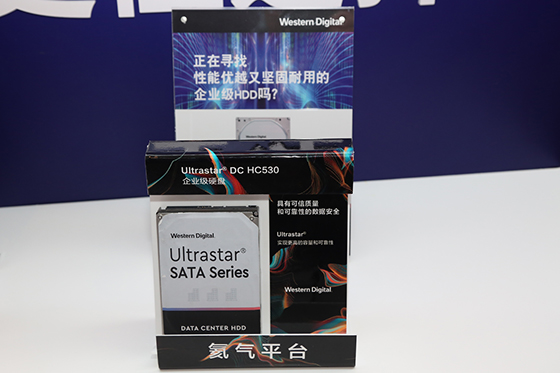 在企業級硬盤方面,此次西部數據展示的是面向數據中心的Ultrastar系列企業級硬盤。該系列機械硬盤采用了充氦技術與垂直磁記錄技術,擁有較低的閑置功耗,并支持 SATA 與 SAS 兩種數據傳輸規格,在實現更高的容量的同時,保持了長期運行的穩定性。