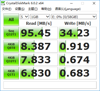 看完外觀接下來我們直奔主題,我將用CrystalDiskMark軟件測試一下這款存儲卡的讀寫性能。