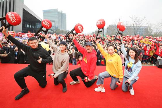 1月25日下午,周星馳攜《新喜劇之王》劇組空降蘇寧總部。導(dǎo)演周星馳、女主角鄂靖雯,演員黃驍鵬、景如洋和蘇寧員工進(jìn)行了近距離的互動(dòng)。
