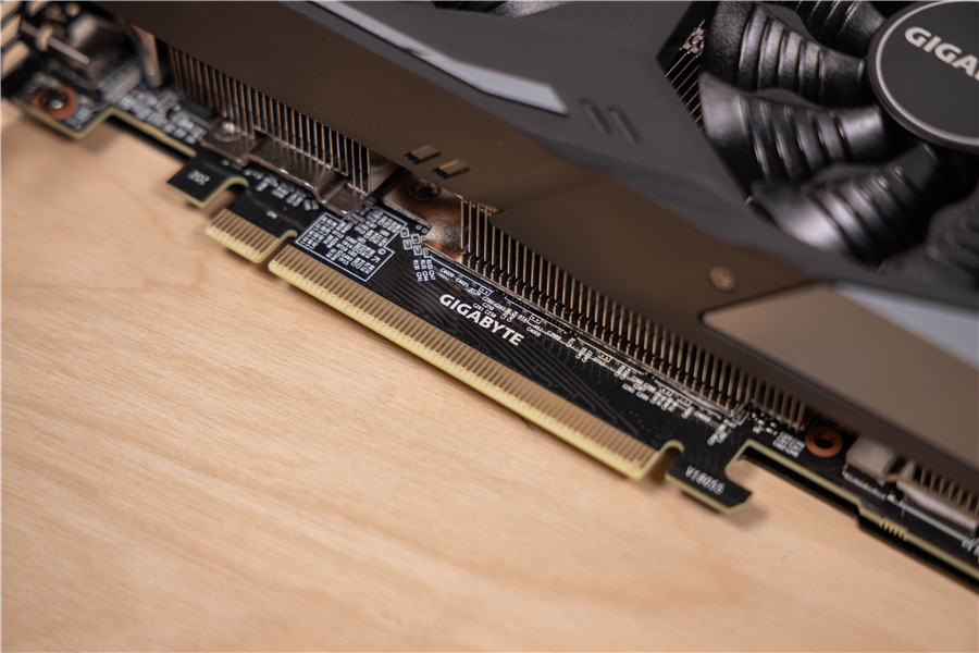 PCI-E接口處并沒有NVIDIA的印記,說明這并不是一張公版PCB方案顯卡。