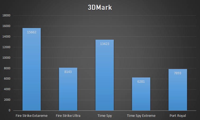 技嘉RTX 2080Ti GAMING OC 11G顯卡在3DMark中的具體得分如下: