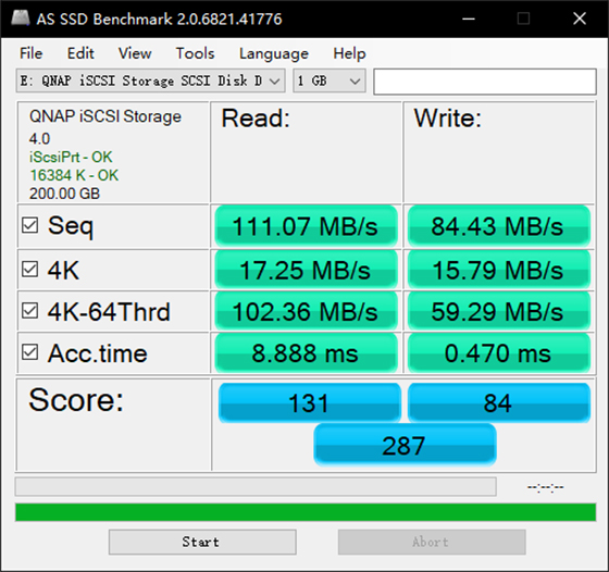 接下來我們組建200GB大小的iSCSI虛擬硬盤,通過測試看一看它的速度到底能夠達(dá)到怎樣的成績。