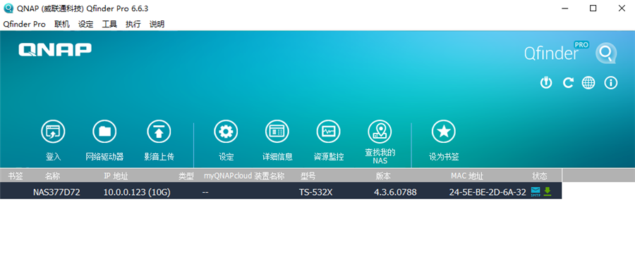 此外我們也選擇了威聯(lián)通QSW-1208-8C萬兆網(wǎng)絡(luò)交換機(jī)來搭配進(jìn)行測試。將NAS安裝上硬盤、插上網(wǎng)絡(luò)與電源,開機(jī)等待一會后就能夠進(jìn)入系統(tǒng)。我們推薦下載Qfinder Pro這款應(yīng)用來尋找到NAS然后進(jìn)入系統(tǒng),這對于小白用戶來說更加容易操作。