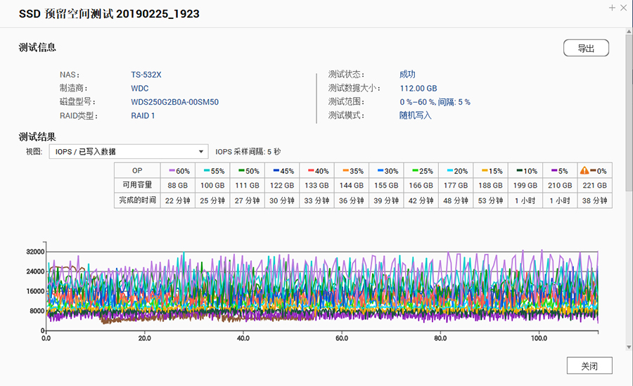 威聯(lián)通官方也有一個SSD分析工具,它可以計算出最佳的SSD預(yù)留空間,來給硬盤進(jìn)行最優(yōu)的加速效果。不過這個SSD分析工具耗時較長,基本上需要4個小時才能夠分析完不同大小預(yù)留空間的加速效果。根據(jù)分析結(jié)果我們將兩個SSD創(chuàng)建成RAID 1陣列組,預(yù)留出60%的存儲空間。