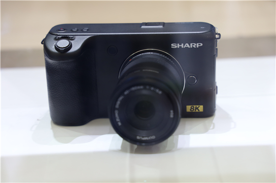 在現場,夏普除了展示了自己第一臺8K照相機,更展示了世界首款集視頻拍攝及錄制、回放、和8K60P線路輸出功能于一體的專業攝像機8C-B60A。