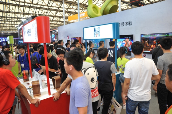 游戲音頻體驗區引來了無數玩家一邊感受高品質游戲音效,一邊大展身手。