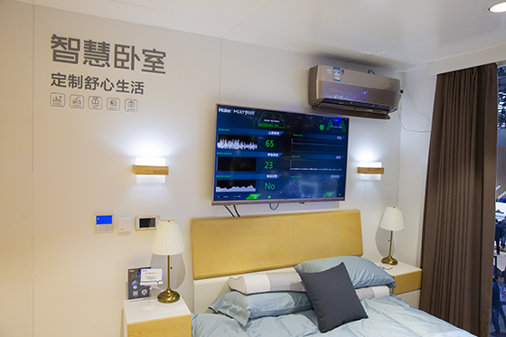 首先來看臥室,這一區域的主要核心技術是空調電視以及智能音箱的智能化,電視不再像一些人們之前看到的僅僅是提升搜索或買機票等功能,電視屏幕還能顯示用戶的心率、體動和呼吸頻率等健康數據了,可以讓用戶更直觀的感受到目前的健康狀況以及睡覺質量。