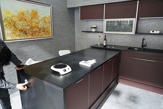 進入展區后,米技的整體智能廚房展區的展廳設計和陳列的產品都恰到好處,既不浮夸也不俗套,十分的典雅,一下子就讓人感受到了高端品質的廚房設計。