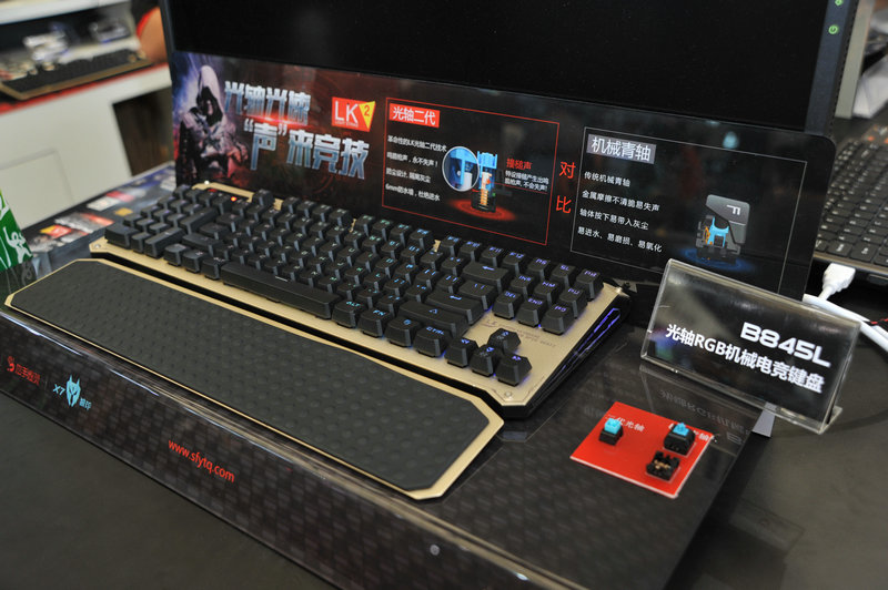 同時現場還展示了幾款光軸機械電競鍵盤和游戲鼠標,全新的LK(light strike)二代光軸技術,利用紅外光學瞬間導通,按鍵響應高達光速奪金0.2ms,光軸二代特創發出“鳴脆槍聲”,讓玩家更富激情動感!