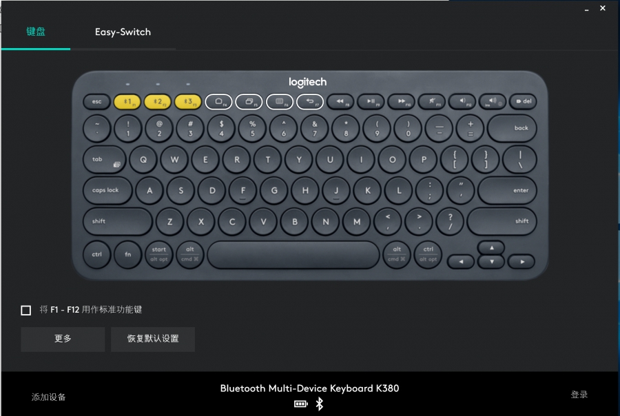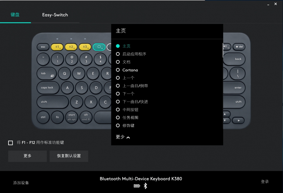 此外,K380還可以通過Logitech Options來根據自己的需求自定義按鍵功能,打開Logitech Options,主界面上將會顯現全部與K380連接過的設備,并在此列表中可以進行具體化調整。