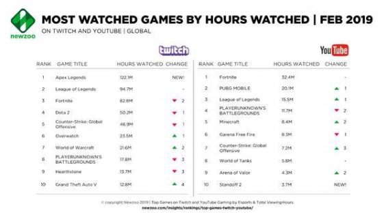 根據國外數據網站Newzoo近日公布的報告顯示,美國在二月份有49%的主流游戲玩家流向了《Apex英雄》,各大主流射擊游戲平均流失率達到了57%,其中《絕地求生》玩家流失最為嚴重。