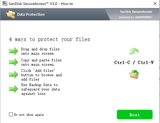 設置完成后,會出現使用說明的提示,有四種方式加密數據,不僅可以直接把數據文件拖入程序主界面內,也可以在程序內添加等。