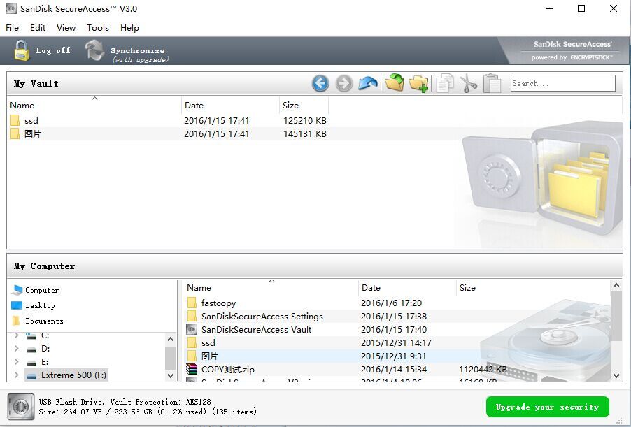 值得一提的是這款閃迪至尊極速500型移動固態硬盤內還附帶了一款加密軟件(Sandisk SecureAccess 3.0加密軟件),這款軟件支持128bit的AES加密,并且支持Windows 7以上和MAC OSX 10.6以上的操作系統。