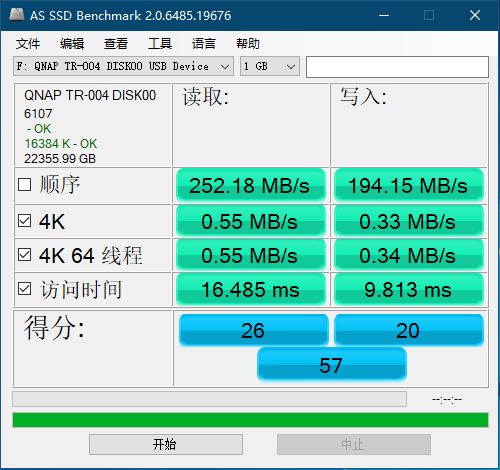 通過(guò)AS SSD Benchmark測(cè)出的最高讀取速度為252.18MB/s,最高寫(xiě)入速度為194.15MB/s。