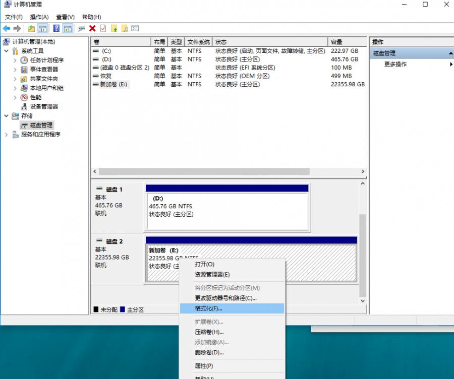 在“硬盤(pán)管理”中找到構(gòu)建的硬盤(pán)名稱(chēng),然后右擊格式化即可。