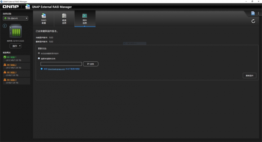 與大多同類(lèi)產(chǎn)品不同的是,TR-004支持電腦端的軟件層面的控制,可以在威聯(lián)通官網(wǎng)中下載管理軟件QNAP External RAID Manager,接下來(lái)看一下這款軟件的操作流程。