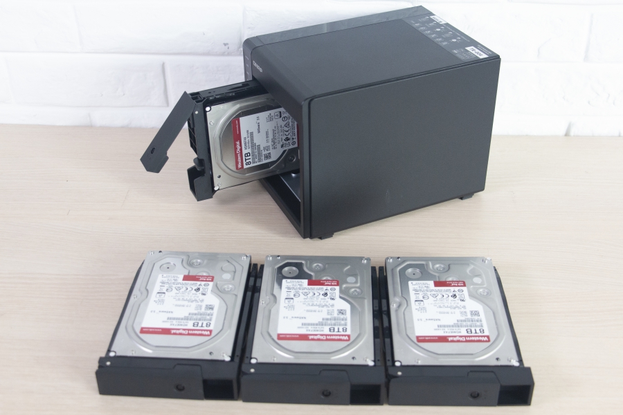 我們安裝的是4塊西部數(shù)據(jù)紅盤(pán),西部數(shù)據(jù)紅盤(pán)擁有針對(duì)NAS需求的NASware技術(shù),對(duì)其兼容性、穩(wěn)定性等特性進(jìn)行了優(yōu)化。此外,紅盤(pán)的功耗較低,噪音小,比較適合用于長(zhǎng)時(shí)間的連續(xù)工作。