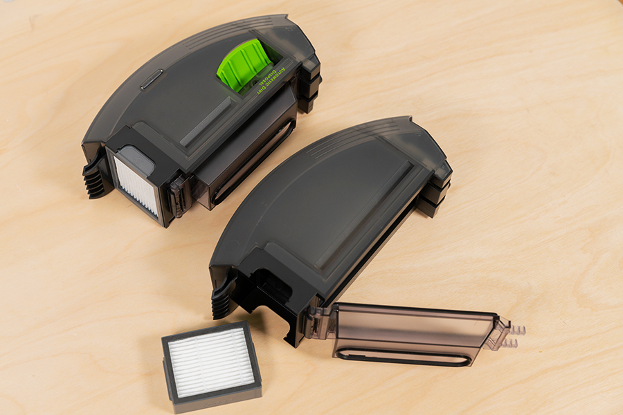 沒錯,就是那個綠色的塑膠出口,當掃地機器人打掃完畢后,對接上自動集塵充電座,集塵盒內的垃圾就是通過這個出口被強大的吸力傳輸進集塵袋。而沒有綠色塑膠出口的集塵盒是無法和Clean Base?自動集塵充電座配套使用的。另外,集塵盒的微塵清潔濾網采用高效濾網,能夠吸附99%微塵,花粉以及寵物的過敏源,不用擔心二次污染。