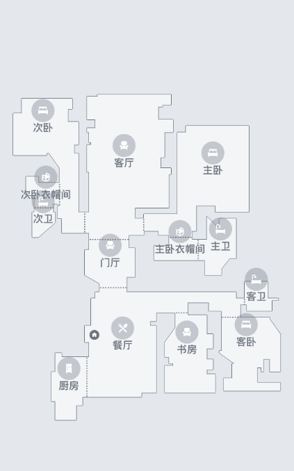 下圖就是我們用iRobot Roomba i7+進行了實地測試后繪制出的一張家庭室內地圖,再通過手機APP端對地圖進行了不同分區的設置。