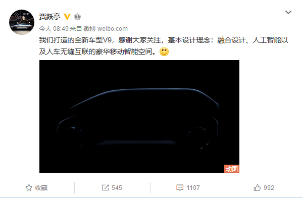 4月4日上午,賈躍亭在微博上宣布了法拉第未來的全新車型V9,并闡述了其基本的設計理念是融合設計、人工智能以及人車無縫互聯的豪華移動智能空間。