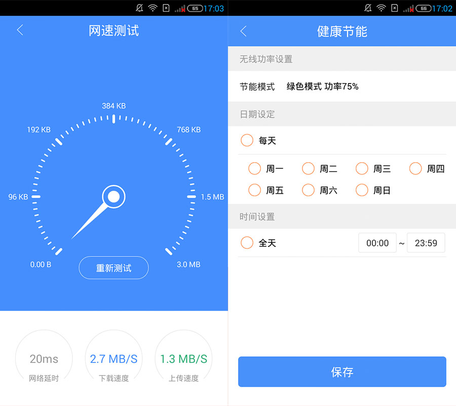 網速測試以及節能設置