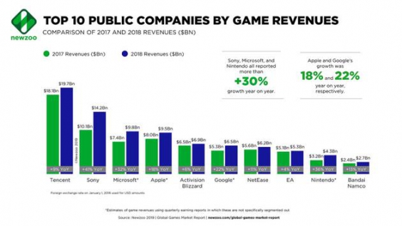 2018全球游戲公司營收排名:騰訊第一 暴雪第五