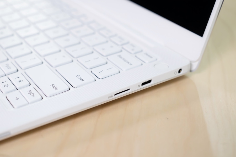 該機最具特色的地方莫過于C面,白色硅纖維(銀色版本為碳纖維材質)上覆蓋一層Velvecron SR-1?防污涂層。相比常見的金屬面板,硅纖維不僅重量更輕、散熱性更強,而且足夠堅韌,一直以來多被運用在F1方程式賽車、民航客機等領域當中。而鍵盤方面,XPS 13 9380采用的是標準的巧克力風格的背光鍵,鍵程為1.3mm,相比上代縮減了0.2mm。