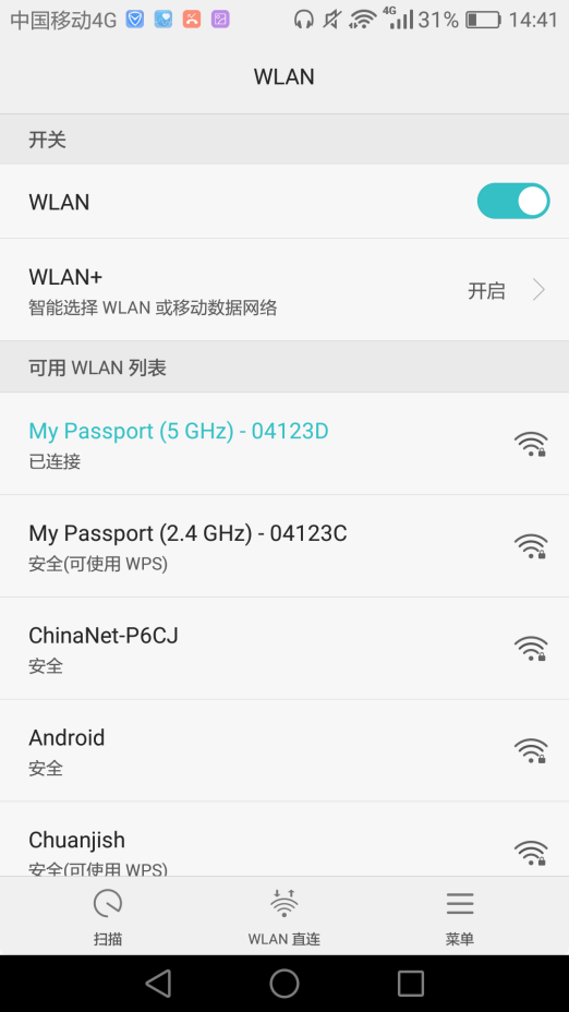 安裝完成后我們需要連接上WIFI,密碼在My Passport Wireless Pro正面的貼紙上。