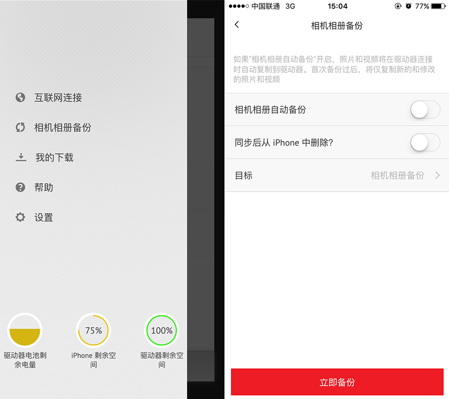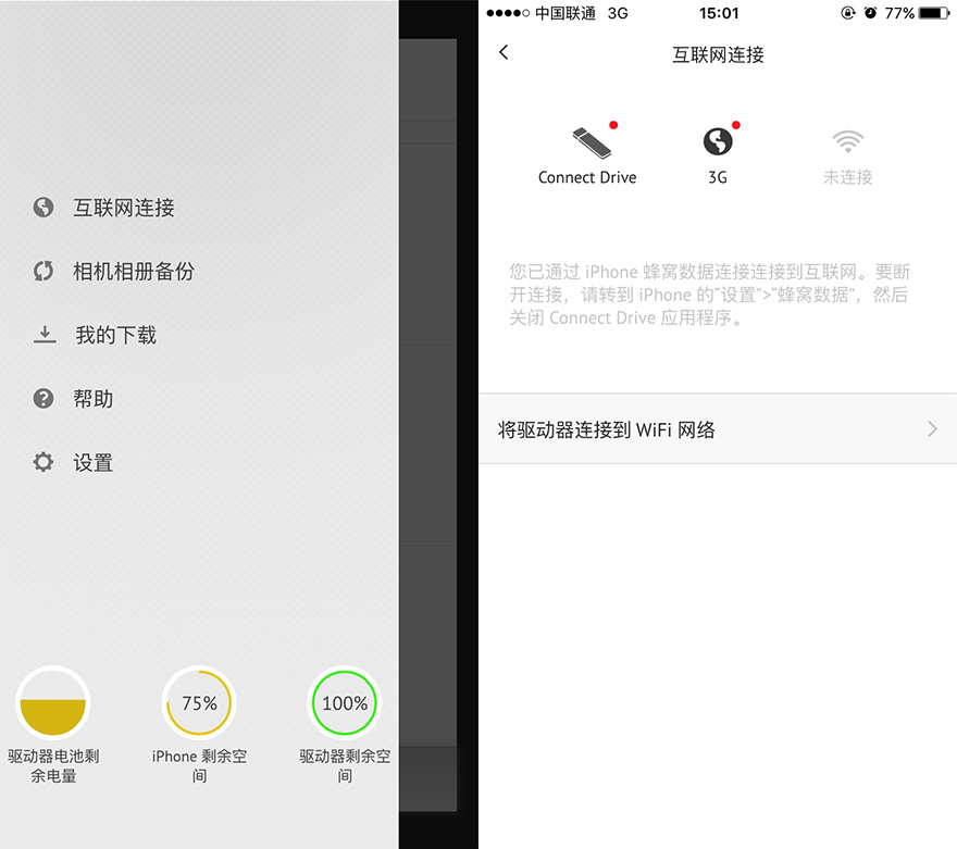 這款閃迪歡欣暢享閃存盤有一點小編甚是喜歡,有許多無線存儲設備,在連接到設備Wi-Fi時是不可以同時使用本身的移動數據訪問互聯網,而它可以,同樣的,它也可以連接到其他Wi-Fi來作為一個移動智能終端連接到互聯網的中轉器,。